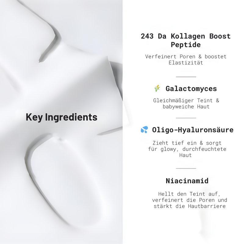 Feuchtigkeit, die nicht nur auf der Haut bleibt, sondern in jede Zelle sinkt. Wie ein Frischekick aus Gletscherwasser und fermentierten Wirkstoffen – für Haut, die sich lebendig anfühlt. -