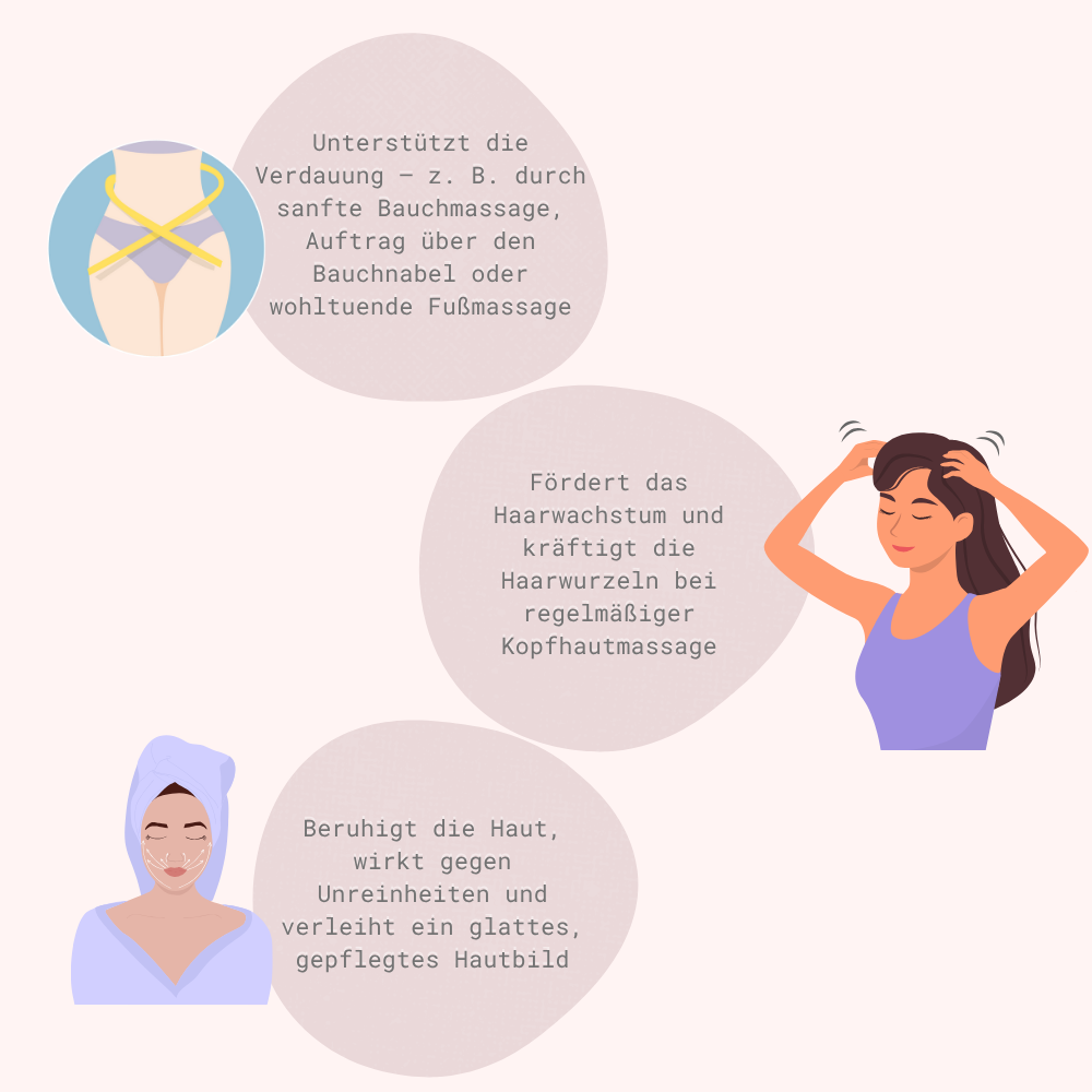 Perfekt für kleine Selfcare-Momente: sanfte Bauchmassage, ein paar Tropfen über den Bauchnabel oder Fußmassage vorm Schlafen – trust, your body will thank you 💆♀️